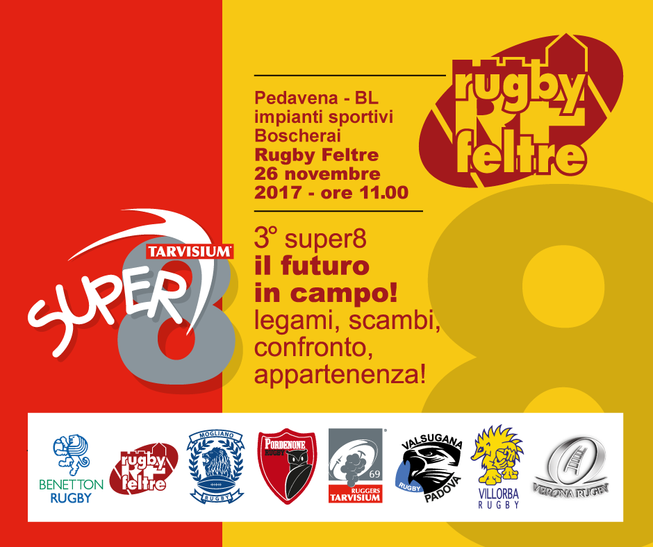 Grande appuntamento per la nostra società domenica 26, perché al Boscherai ospiteremo il Super 8, al quale parteciperanno Tarvisium, Mogliano, Benetton, Pordenone, Valsugana, Verona, Villorba e noi del Feltre.