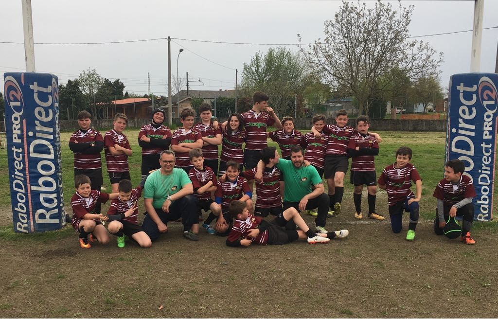 minirugby: bene un po' tutte le nostre formazioni, impegnate addirittura su tre campi. L'under 12 (in foto) era a Castelfranco, l'under 10 e l'under 8 hanno giocato a Paese e l'under 6 al festival di Mogliano.
