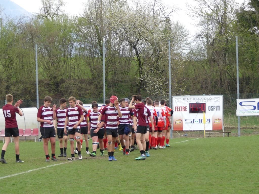 under 18 - RUGBY FELTRE - FTGI VALPOLICELLA WEST VERONA 14-3: bisognava rimontare il 25-14 della partita d'andata e l'impegno si annunciava davvero difficile, perché i veronesi sono una squadra quadrata e con buone individualità . E' stata senza dubbio una gara spigolosa, nella quale i nostri ragazzi hanno saputo mantenere la calma prima e la lucidità poi, quando il risultato è stato favorevole. E' stato un match di altissimo livello tecnico ed emotivo per la categoria. In ballo c'era l'accesso alla finale del territoriale, dedicata alla memoria di Toni Piazza. Con cuore e testa la diciotto ha saputo portarsi in vantaggio con Lorenzo Garlet, gestire la reazione del Valpolicella e colpire ancora nella ripresa con Salvatore Stefani. Alla fine di questa doppia, equilibratissima sfida, il punteggio complessivo recita Feltre - Valpolicella 28-28, ma in finale ci andiamo noi per effetto delle 4 mete realizzate nel doppio confronto, contro le 3 dei veronesi.