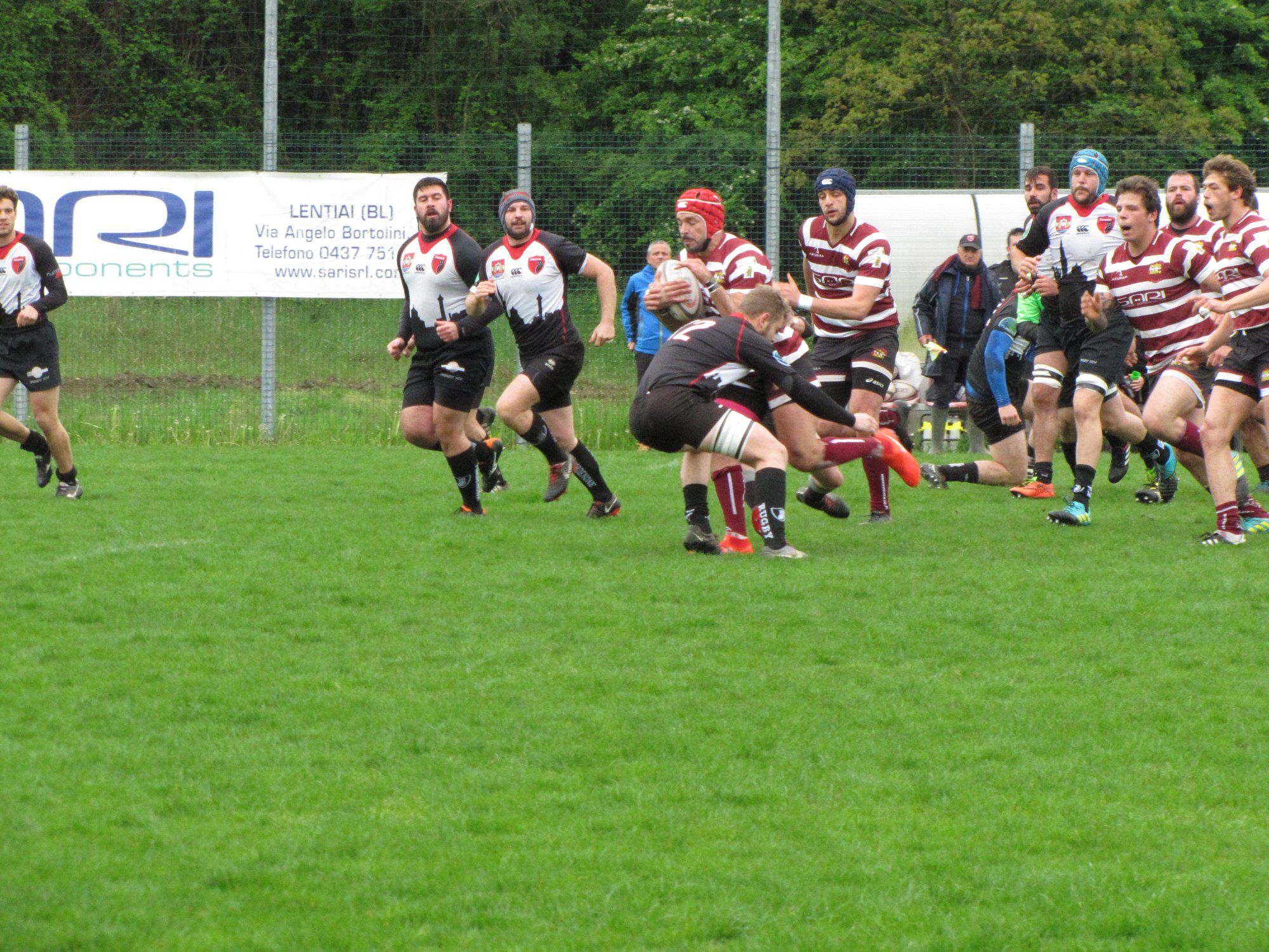serie C - RUGBY FELTRE - PORDENONE RUGBY 33-19: bella prestazione e meritata vittoria della nostra prima squadra (nella foto di Romano Bilesimo, che ringraziamo), che chiude la stagione di fronte al proprio pubblico con una vittoria. Bravi i ragazzi, perché tra infortuni e compagni di squadra in campo con l'under 18, i numeri erano proprio risicati. Dopo esserci issati sul 26-0, si è un po' temuta la beffa, come accaduto con il Conegliano, invece, Sommariva e compagni hanno stretto i denti e stoppato il tentativo di rimonta del Pordenone. Le nostre mete sono di Matteo Boschet, Matteo De Boni, Giovanni Cambruzzi, Giacomo Conz e Leonardo Corso, autore anche dei punti dalla piazzola. Un grande in bocca al lupo ad Andrea Turrin, che in uno scontro fortuito, a qualche minuto dalla fine, ha riportato un brutto trauma facciale, che gli ha fatto concludere anzitempo la stagione. Sabato a Conegliano la chiusura del campionato, in anticipo alle 17.30.