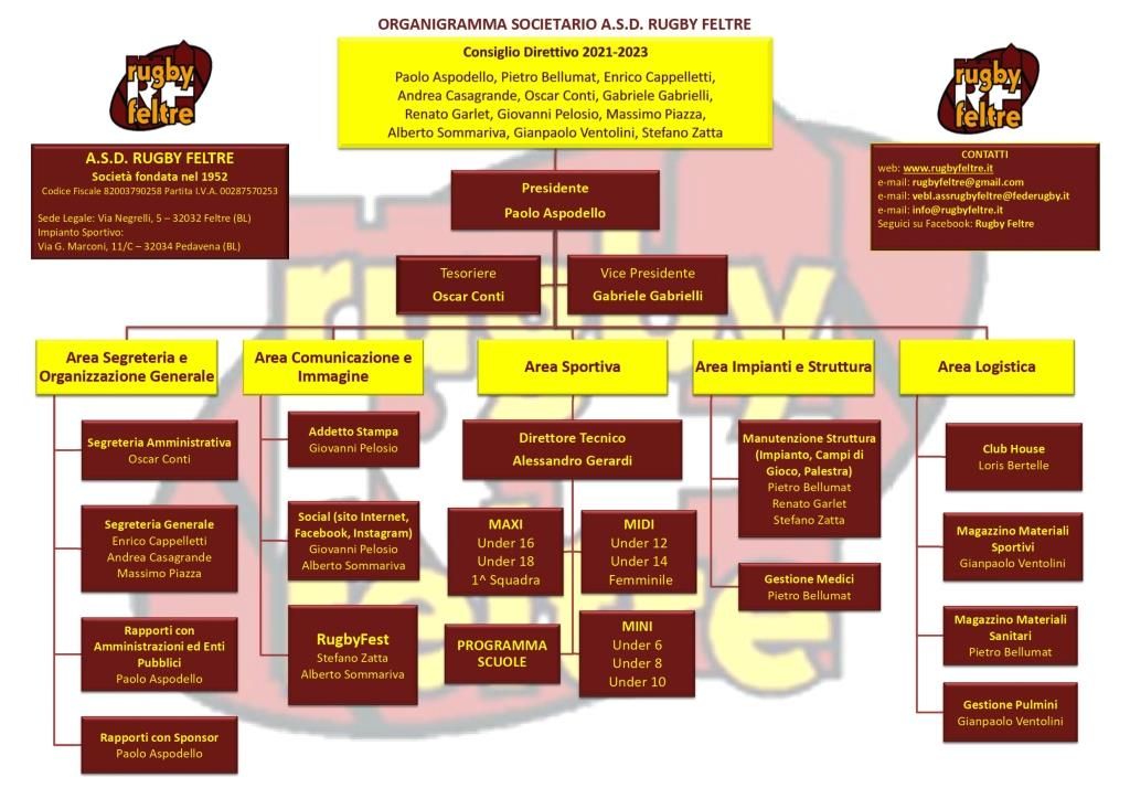 Il consiglio direttivo del Rugby Feltre, eletto dall'assemblea elettiva che si è svolta sabato 12 dicembre, ha nominato Paolo Aspodello presidente dell'associazione anche per il triennio 2021 - 2023, in occasione della sua prima seduta, tenutasi sabato 9 gennaio, sempre nel rispetto delle misure di contrasto alla diffusione del virus.
