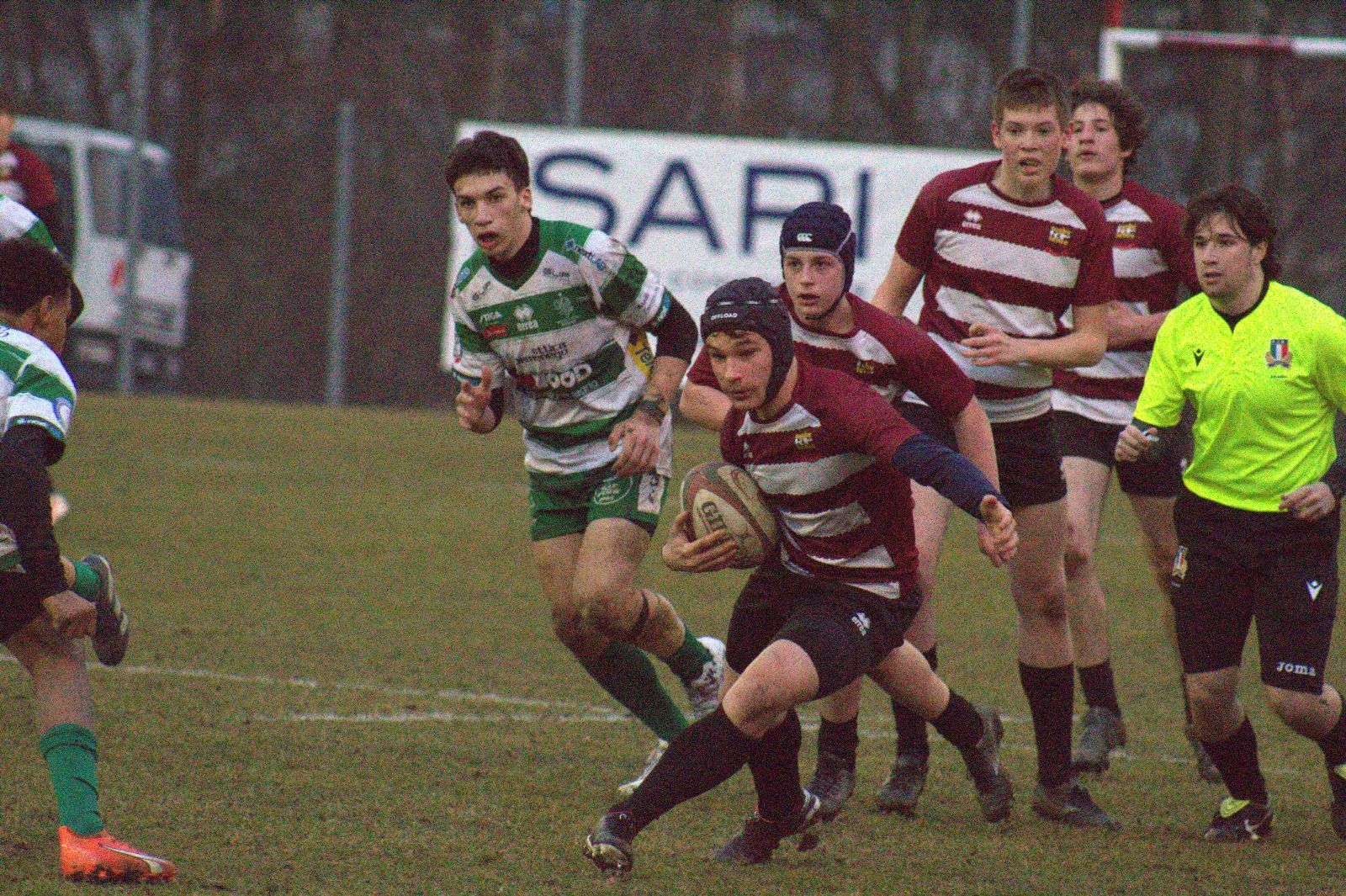 under 16 - RUGBY FELTRE - BENETTON RUGBY/2 22-12: bella partita, tra due squadre che hanno pensato soprattutto a giocare. Primo vantaggio del Rugby Feltre con Alessandro Minella, al quale rispondono i trevigiani con una meta non trasformata per il momentaneo 5-5. La Benetton insiste ed è bravissimo Claudio Fenti a evitare una seconda marcatura, tenendo alto l'avversario in area di meta. Il Feltre torna ad attaccare e al 17' marca con un'azione da manuale: lungo l'out di sinistra del fronte d'attacco, da Leonardo Bellani a Umberto Gasparetto e da questi a Noah Sangiorgi, che con un sidestep tremendo lascia sul posto l'estremo avversario e si invola verso i pali. Mattia Zabot trasforma per il momentaneo 12-5. La scena si ripete nella ripresa, quando ancora Sangiorgi sfonda per le vie centrali, evita l'estremo della Benetton e va a segno sotto l'acca con un plastico volo. Mattia Zabot firma il 19-5. La Benetton, però, non è fuori partita e lo dimostra alzando il ritmo del proprio gioco, muovendo un poco meno il pallone e viceversa attaccando per linee verticali. I biancoverdi accorciano sul 19-12 e si lanciano all'attacco nel tentativo di ristabilire la parità. La nostra under 16, invece, difende bene e a una manciata di minuti dal termine allunga nuovamente oltre il break, grazie a un calcio da distante di Leonardo Bellani. Gli ultimi tentativi della Benetton trovano ancora la difesa feltrina pronta a sacrificarsi per salvare il risultato, che al fischio finale è di 22-12 in favore dei granata.